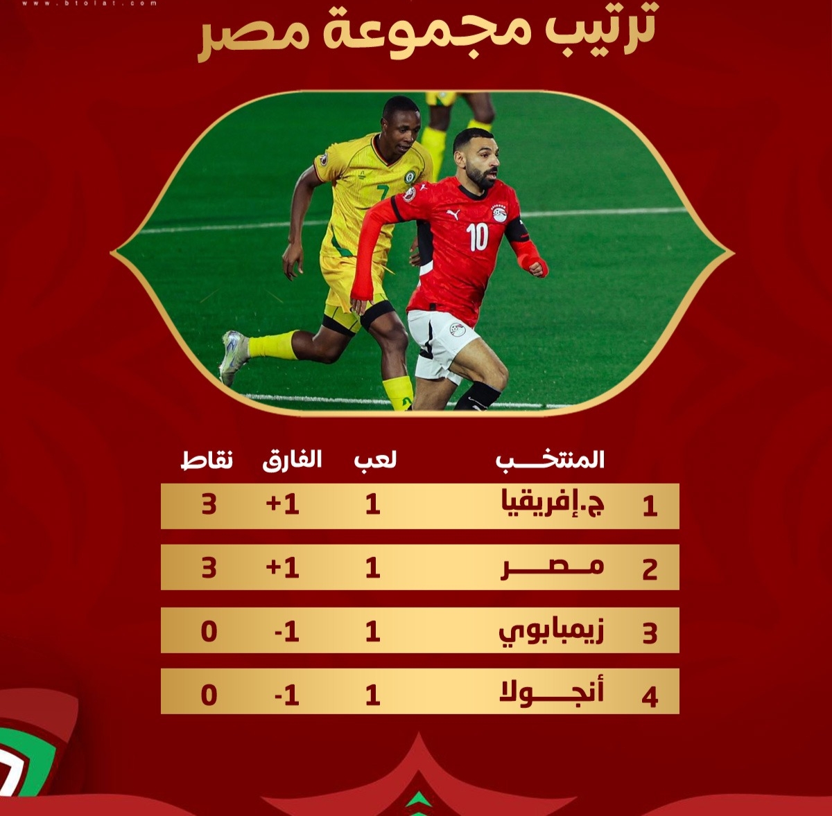 يبدأ المنتخب المصري رحلة البحث عن اللقب الذي عصى على الفراعنة منذ 2010 وتعول الجماهير على العميد حسام حسن مدرب المنتخب وتشكيلتة التي تضم العديد من النجوم وعلى رأسهم قائد المنتخب محمد صلاح الذي يأمل أن يتوج باللقب القاري الذي يفتقده مع المنتخب،